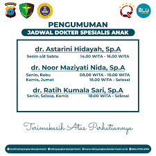 Kesehatan anak adalah prioritas utama bagi setiap orang tua. Memastikan buah hati mendapatkan perawatan medis terbaik sejak dini merupakan investasi berharga untuk masa depan mereka. Salah satu cara untuk mewujudkan hal tersebut adalah dengan memilih dokter anak yang kompeten dan terpercaya. Rumah Sakit Bhayangkara, sebagai salah satu jaringan rumah sakit yang tersebar di seluruh Indonesia, menyediakan layanan dokter anak dengan jadwal yang bervariasi. Artikel ini akan membahas secara mendalam mengenai jadwal dokter anak Bhayangkara, sistem pendaftaran, jenis pelayanan, kuota pasien, tips memilih dokter yang tepat, serta jawaban atas pertanyaan yang sering diajukan.