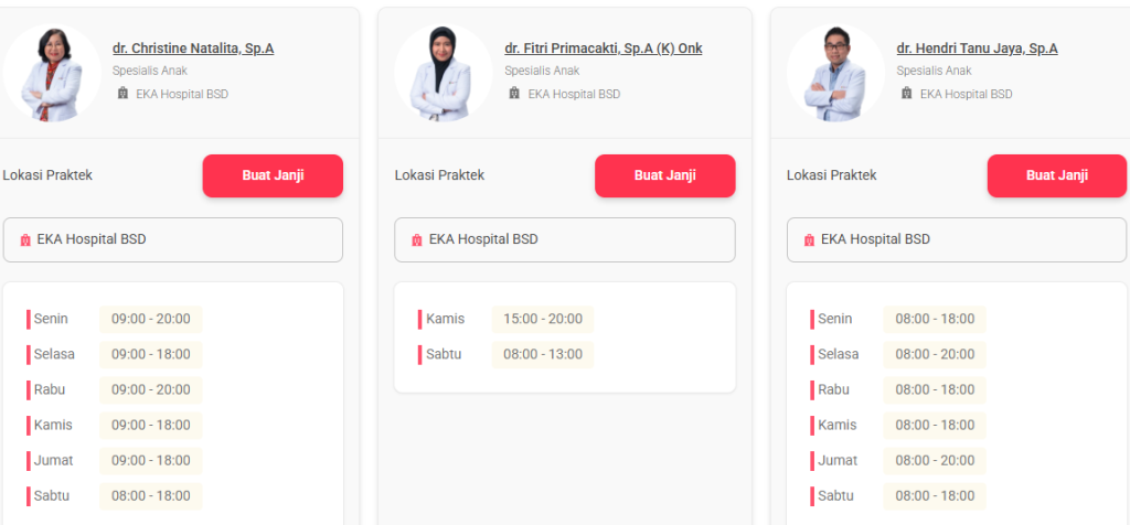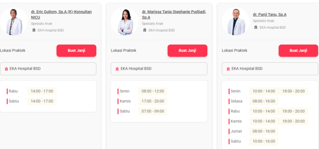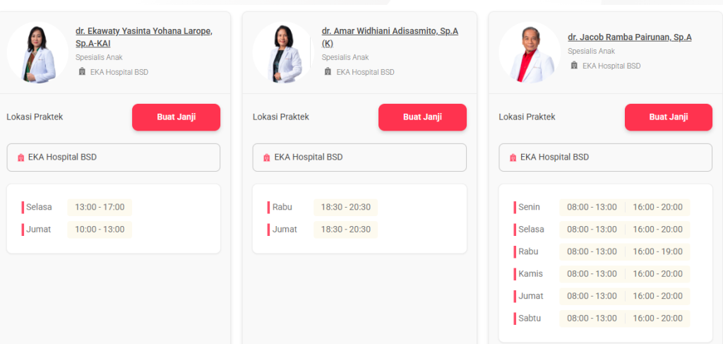 Sistem Pendaftaran Dokter Anak Eka Hospital BSD
