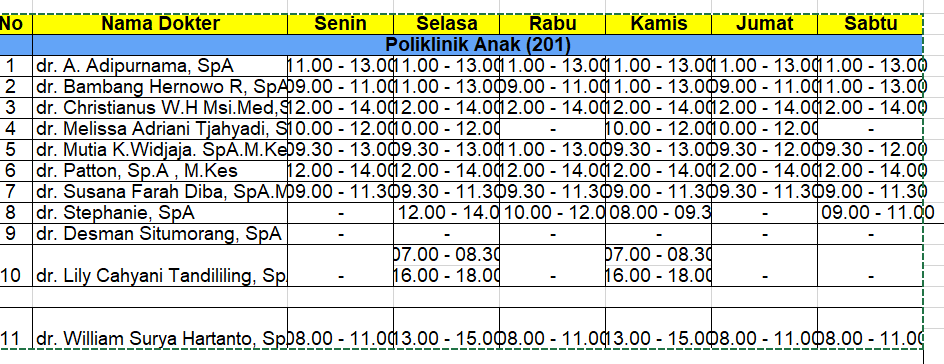- Beberapa dokter mungkin memiliki jadwal praktik di luar jam yang tercantum di atas (misalnya, praktik di klinik pribadi).