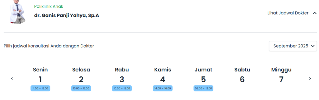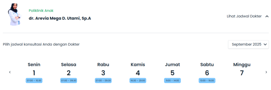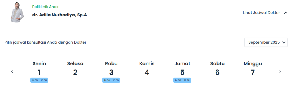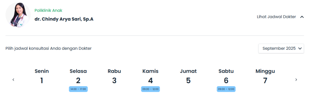 - Pilih dokter anak yang Anda inginkan dan jadwal yang tersedia.