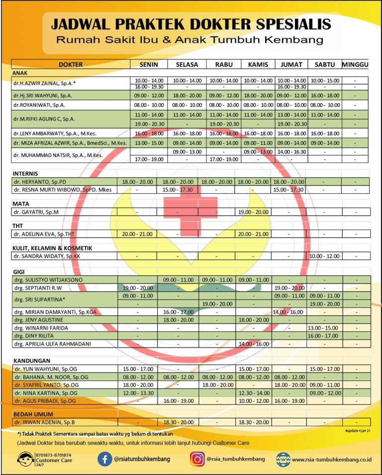 - Selalu periksa jadwal terkini di website resmi RS TKA Cimanggis atau hubungi bagian informasi.