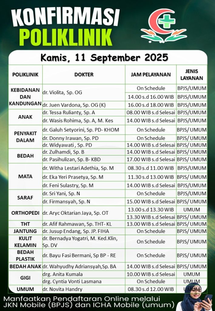 - Q: Bagaimana cara mengetahui jadwal dokter anak RS Ummi Bengkulu yang terbaru?
