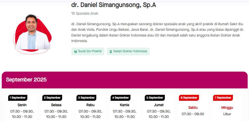 Jadwal Dokter Anak RS Viola Terbaru