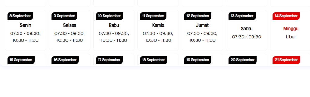- Pilih tanggal dan jam kunjungan yang tersedia.