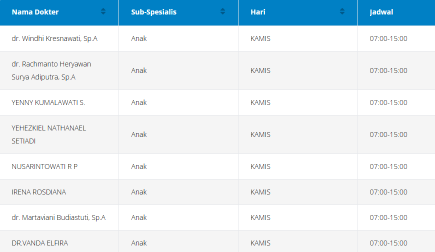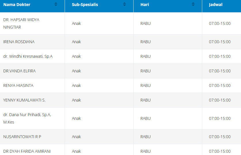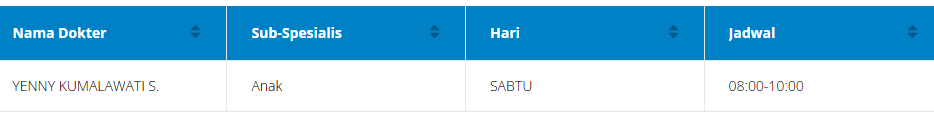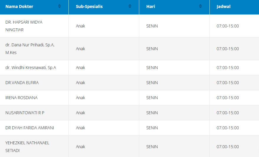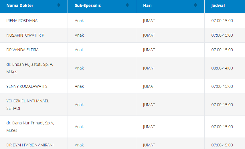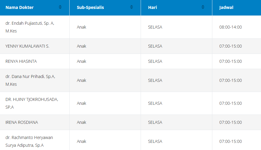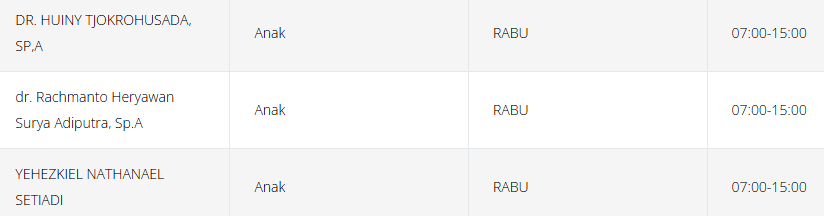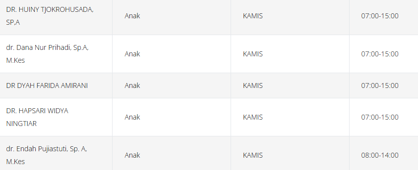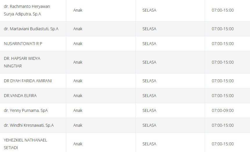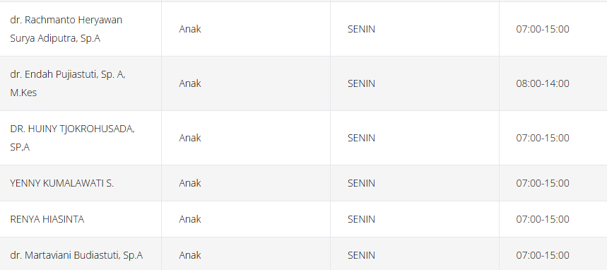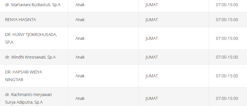 Tabel jadwal dokter anak di RSPAD (perlu diingat bahwa jadwal ini dapat berubah sewaktu-waktu):