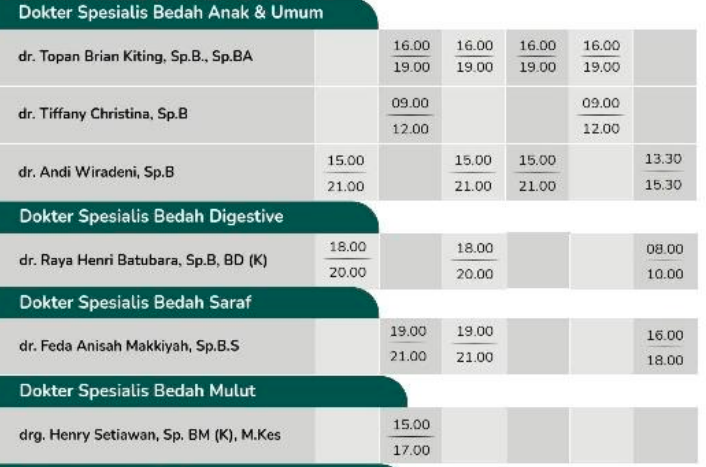 Tabel Jadwal Praktik Dokter Bedah Umum Bunda Aliyah