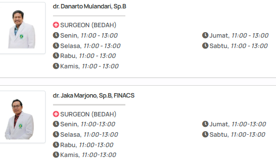 Tabel jadwal Dokter Bedah Umum RS Hermina Wonogiri