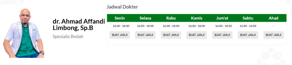 Memahami jadwal dokter adalah langkah awal yang penting untuk merencanakan konsultasi atau tindakan bedah. RSI Jemursari menyediakan berbagai pilihan dokter bedah umum dengan jadwal praktik yang bervariasi untuk mengakomodir kebutuhan pasien.
