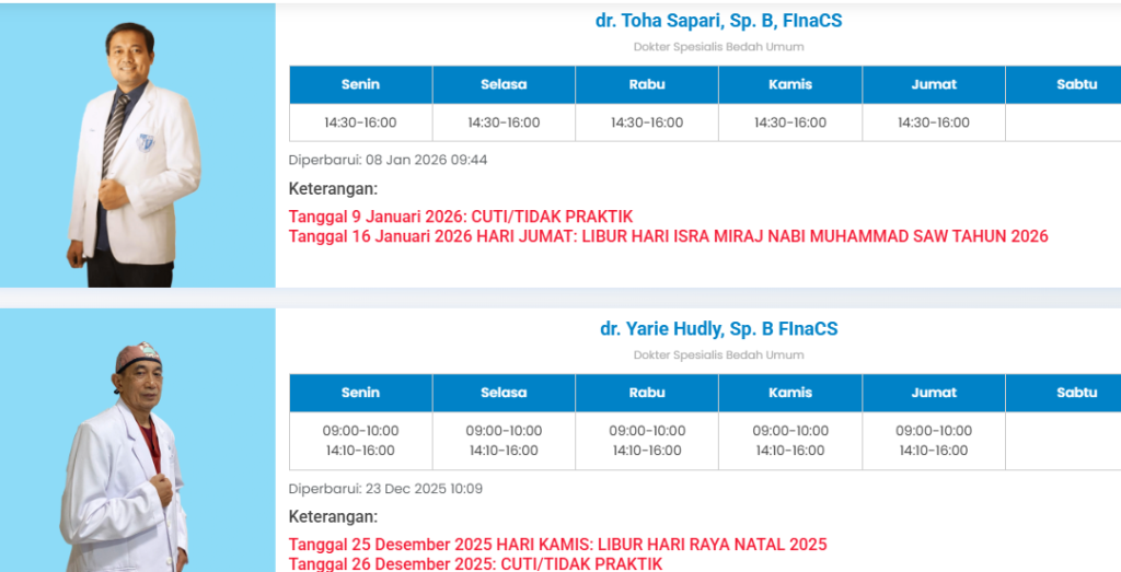 Tabel Jadwal Dokter Bedah Umum TMC Tasikmalaya Terbaru