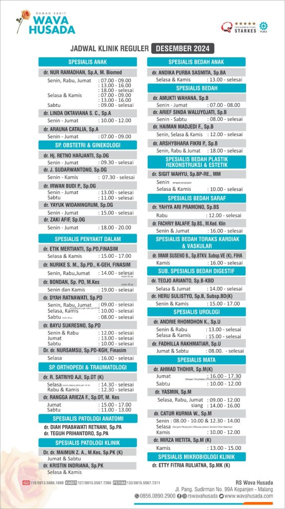 - Manfaatkan informasi dari pihak rumah sakit: Bagian informasi atau pendaftaran di Wava Husada Kepanjen biasanya dapat memberikan informasi mengenai dokter yang bertugas dan fokus keahlian mereka.