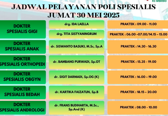 - Periksa Situs Web Resmi RS Widodo Ngawi: Banyak rumah sakit menyediakan informasi jadwal dokter di situs web mereka.