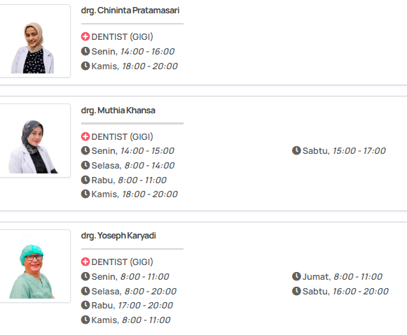 - Disarankan untuk selalu menghubungi Hermina Bogor terlebih dahulu untuk memastikan jadwal dokter gigi yang Anda inginkan.