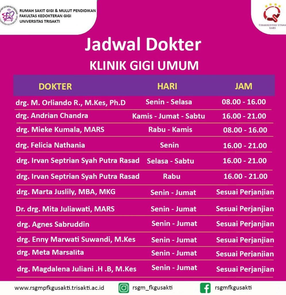 Q: Bagaimana cara mengetahui jadwal dokter gigi Trisakti yang paling update?