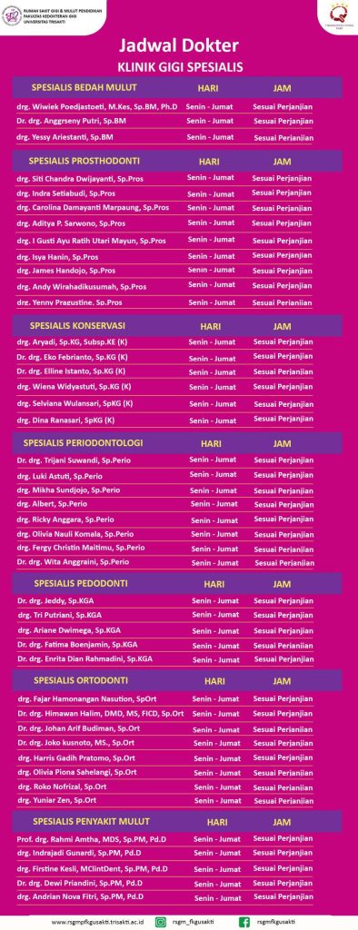 - Media Sosial: Beberapa klinik gigi yang bekerja sama dengan FKG Trisakti mungkin mempromosikan jadwal dokter gigi mereka melalui media sosial.