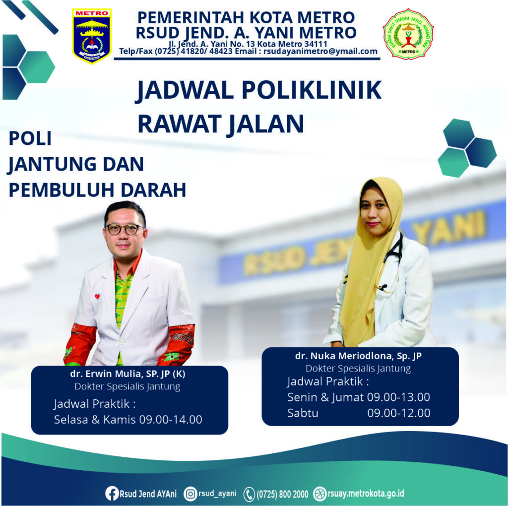 - RSUD Ahmad Yani Metro sudah memiliki layanan spesialis “Jantung dan Pembuluh Darah” sebagai bagian dari tim dokter ahli di rumah sakit.