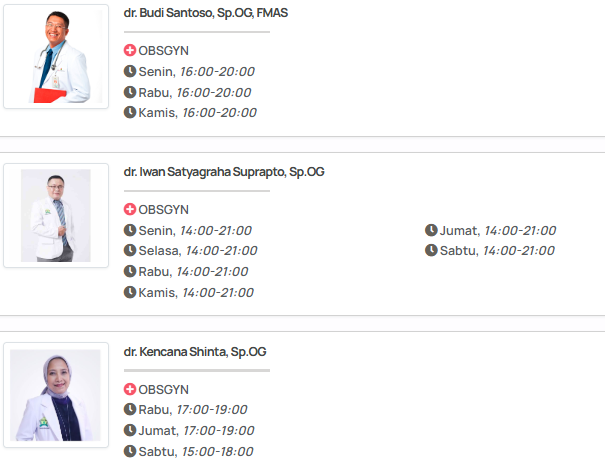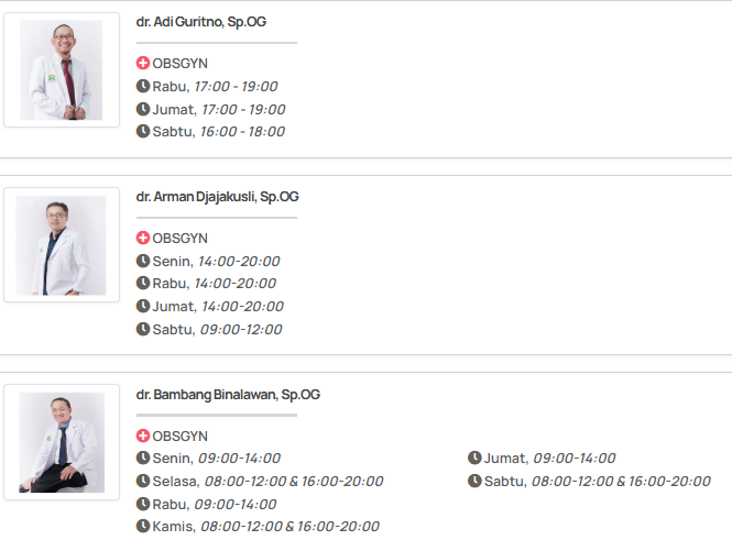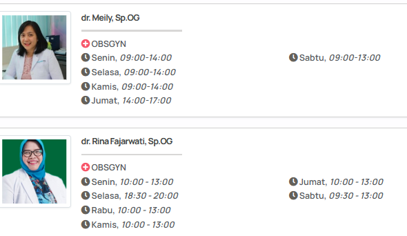 - Pilih dokter kandungan yang Anda inginkan berdasarkan jadwal yang tersedia.