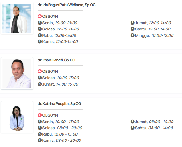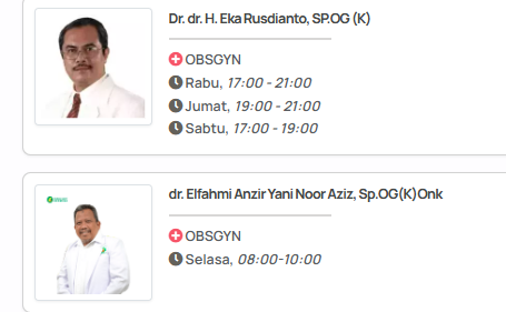 - Pilih nama dokter kandungan yang Anda inginkan.