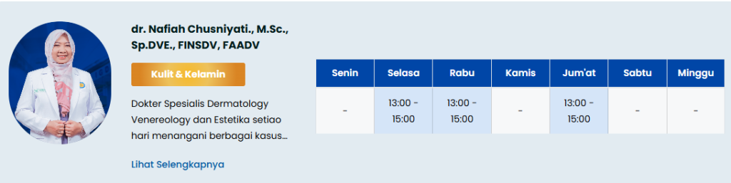 Tabel Jadwal Dokter Spesialis Kulit Dan Kelamin PKU Gamping