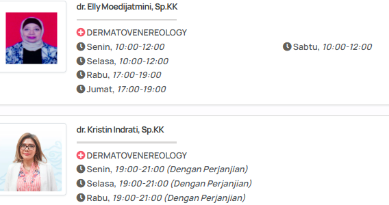 - Pilih Dokter dan Jadwal: Sampaikan keinginan Anda untuk berkonsultasi dengan dokter kulit dan pilih jadwal yang paling sesuai. Jika Anda memiliki preferensi dokter, sebutkan nama dokter tersebut.
