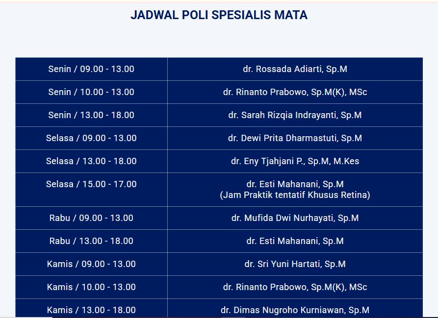 Q: Bagaimana cara mengetahui jadwal dokter mata yang paling update di RS YAP” Magelang?