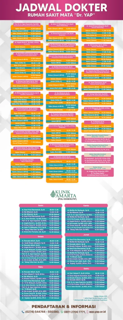 Kesehatan mata adalah aset berharga yang seringkali terlupakan. Di era digital ini, dengan paparan layar yang konstan, menjaga kesehatan mata menjadi semakin penting. Bagi Anda yang berdomisili di Magelang dan sekitarnya, menemukan dokter mata yang tepat dengan jadwal yang sesuai adalah langkah awal untuk menjaga penglihatan Anda. Artikel ini hadir sebagai panduan lengkap mengenai jadwal dokter mata di Yayasan Amal dan Pelayanan (YAP) Magelang, sistem pendaftaran, jenis pelayanan yang tersedia, kuota pasien, tips memilih dokter, dan jawaban atas pertanyaan yang sering diajukan.