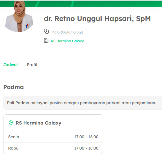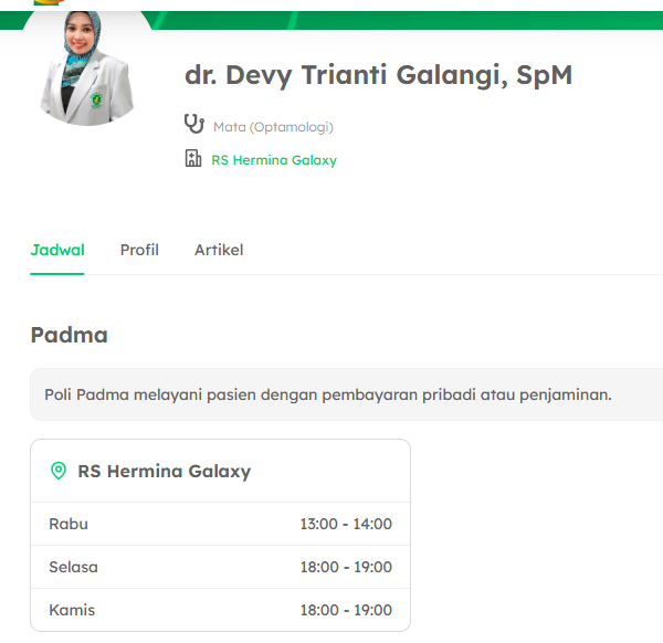 Bagaimana cara mengetahui jadwal dokter mata Hermina Galaxy yang paling update?