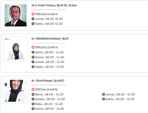 - Beberapa dokter mungkin memiliki jadwal praktek di hari yang berbeda atau jam yang berbeda.