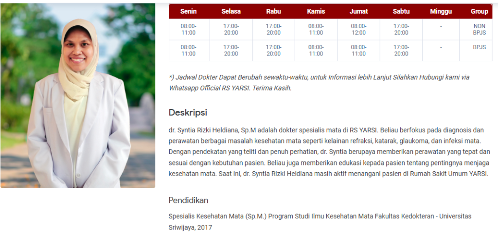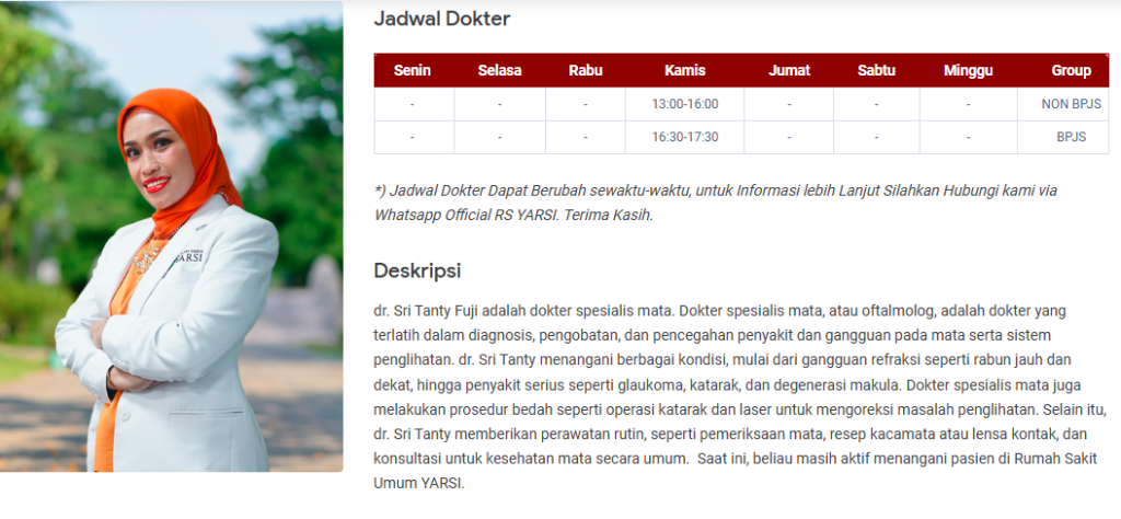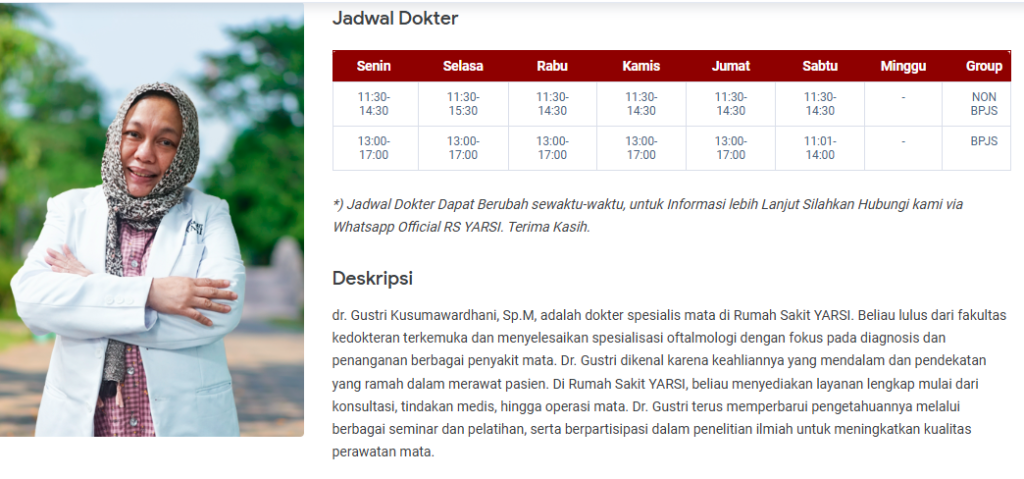 - Mengunjungi Website Resmi RS Yarsi: Rumah sakit biasanya memperbarui jadwal dokter secara berkala di website resmi mereka.