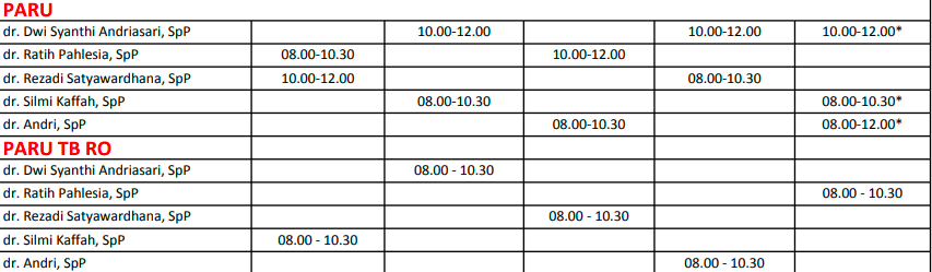 Tabel Jadwal Dokter Paru RS Fatmawati