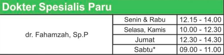 Tabel Jadwal Dokter Paru RS FMC Bogor