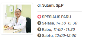 - Pastikan rumah sakit tempat dokter berpraktek memiliki fasilitas diagnostik (rontgen, CT-scan, spirometri) dan terapi yang lengkap untuk mendukung kebutuhan perawatan paru Anda.