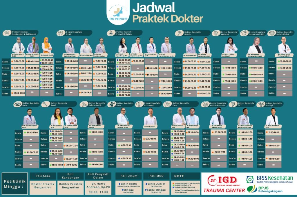 A1: Cara paling cepat dan akurat adalah dengan menghubungi nomor telepon pendaftaran RS Pena 98 secara langsung atau melalui aplikasi/website resmi RS jika tersedia. Jadwal bisa berubah, jadi konfirmasi langsung adalah yang terbaik.