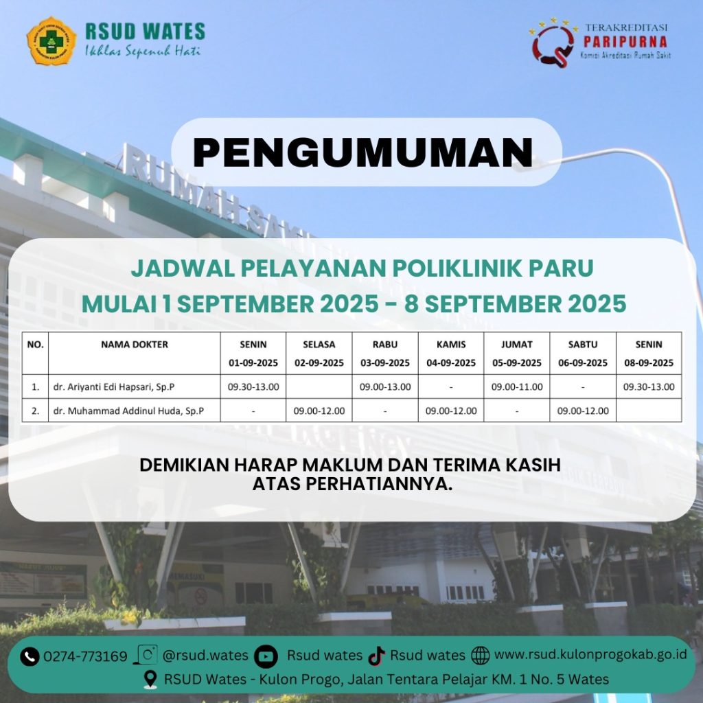 Q1: Bagaimana cara mengetahui jadwal terbaru dokter paru di RSUD Wates?