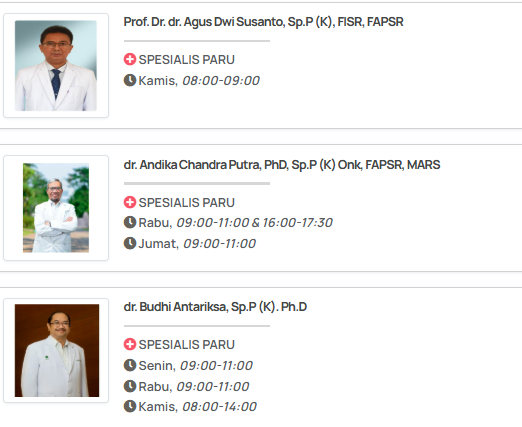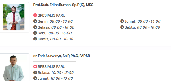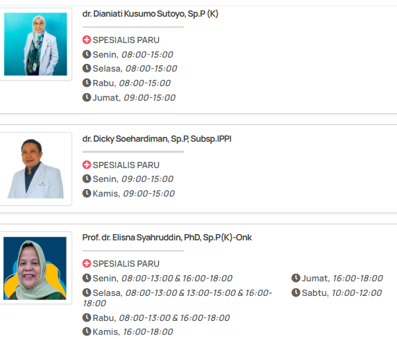 - Beberapa dokter mungkin memiliki jadwal praktik di luar poliklinik (misalnya, untuk tindakan bronkoskopi, visit rawat inap, atau operasi).