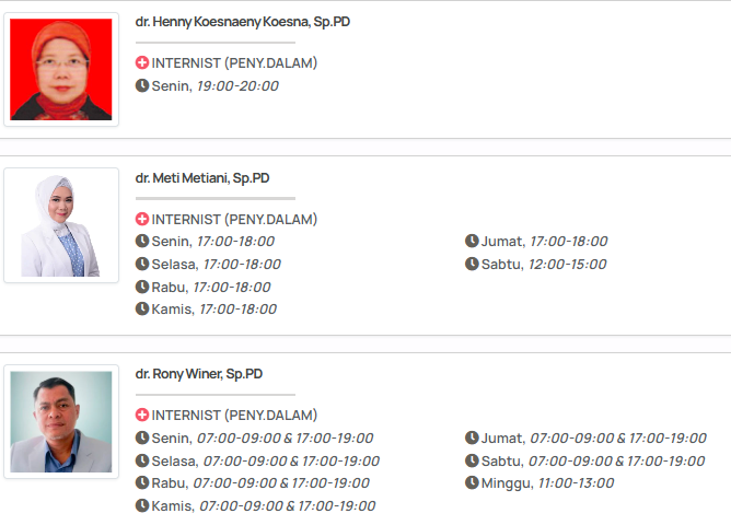 - Spesialis lain di RS yang sama meskipun fokus utama artikel ini penyakit dalam memberi fleksibilitas untuk mendapatkan perawatan multispecialist jika diperlukan.