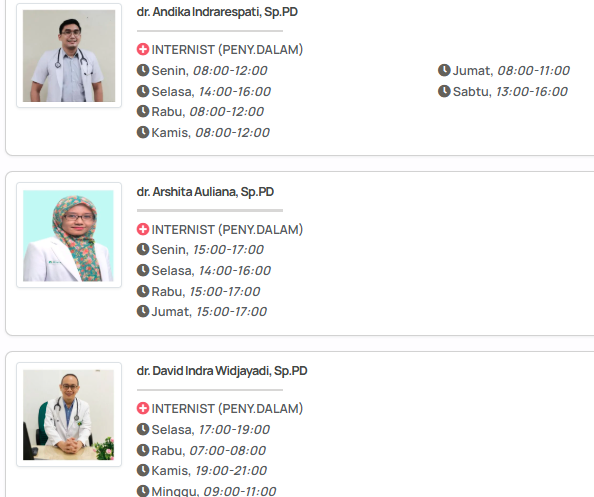- Beberapa dokter mungkin memiliki jadwal tambahan atau perubahan jam praktek tertentu.