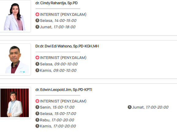 Q: Bagaimana cara mengecek jadwal dokter penyakit dalam RS Hermina Kemayoran yang paling akurat?