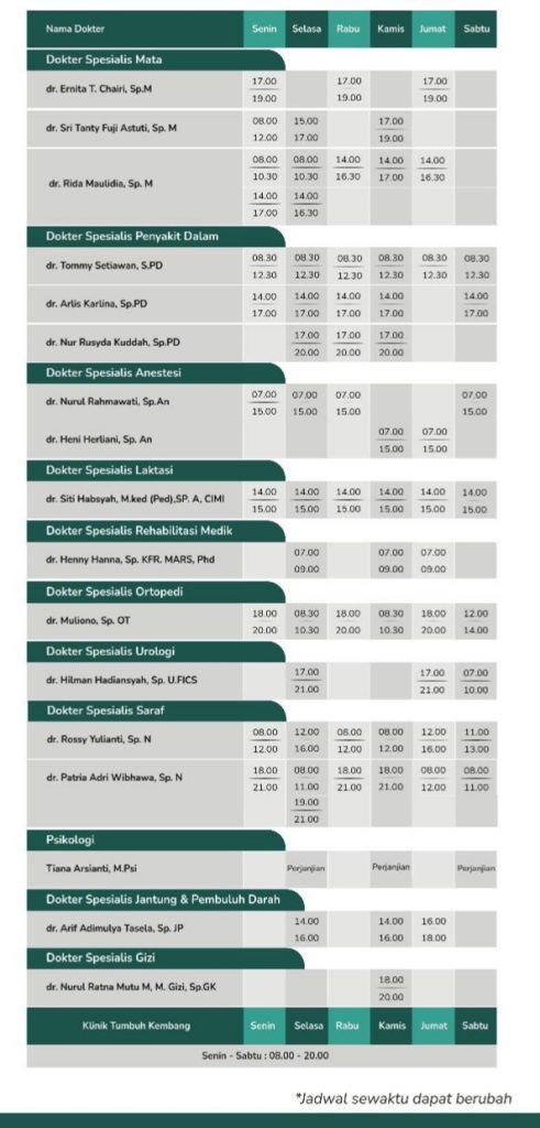 Jadwal dokter dapat berubah sewaktu-waktu. Untuk mendapatkan informasi yang paling akurat dan terupdate, disarankan untuk: