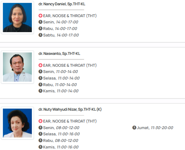 Jadwal Dokter RS THT Prof. Nizar