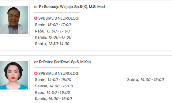 - Beberapa dokter mungkin memiliki jadwal yang berbeda untuk konsultasi rawat jalan dan rawat inap.