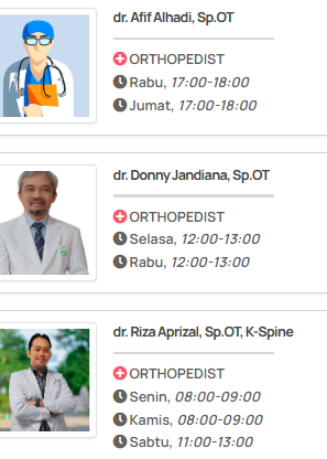 - Sesuaikan dengan Sub-spesialisasi: Jika Anda memiliki masalah spesifik (misalnya nyeri lutut kronis, masalah tulang belakang, cedera bahu, atau kondisi anak), carilah dokter ortopedi yang memiliki sub-spesialisasi di bidang tersebut (contoh: Sp.OT(K) Knee, Sp.OT(K) Spine, Sp.OT(K) Sport, Sp.OT(K) Paed).