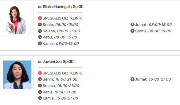 Tabel Jadwal Dokter Spesialis Gizi Eka Hospital BSD