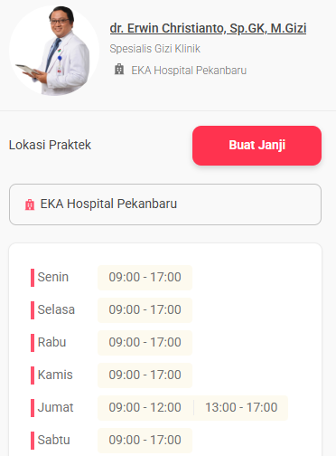 Tabel Jadwal Dokter Spesialis Gizi di Eka Hospital Pekanbaru