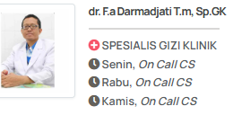Tabel Jadwal Dokter Spesialis Gizi RS Geriatri Purwokerto