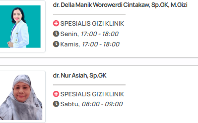 - Tanyakan kepada Dokter yang Merawat Anda: Tanyakan kepada dokter spesialis penyakit dalam atau dokter lain yang merawat Anda mengenai siapa spesialis gizi yang biasanya menangani pasien dengan kondisi serupa.