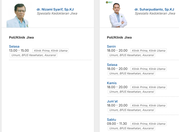 Tabel Jadwal Dokter Spesialis Kesehatan Jiwa RS Islam Sukapura