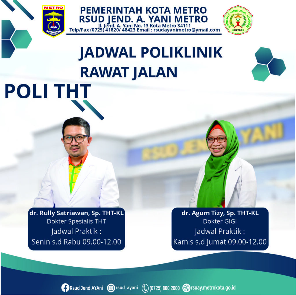 - Hubungi Langsung RS Ahmad Yani Metro: Cara paling akurat adalah dengan menghubungi langsung nomor telepon RS Ahmad Yani Metro. Tanyakan jadwal dokter THT terbaru dan pastikan ketersediaan dokter yang Anda inginkan.