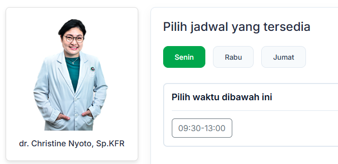 - Petugas akan membantu Anda memilih dokter, tanggal, dan jam yang tersedia.