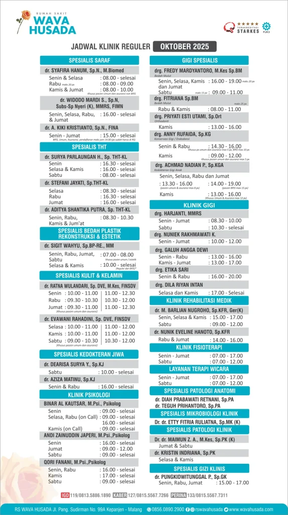 - Pastikan untuk melakukan konfirmasi jadwal terbaru melalui situs web resmi RS Wava Husada atau melalui telepon.